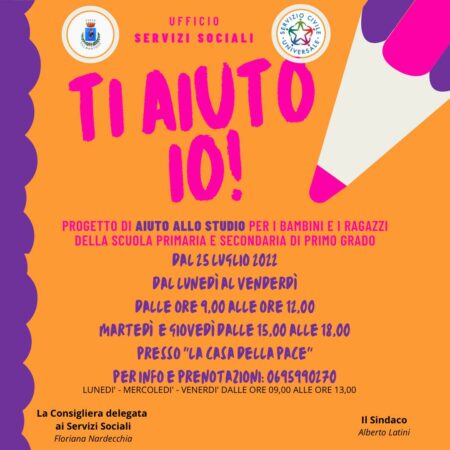 Si informa la cittadinanza di Valmontone che, a partire dal 25 luglio 2022 al prossimo 9 settembre, nei giorni dispari della settimana (lunedì, mercoledì, venerdì; dalle 9 alle 12) e, nei pomeriggi del martedì e del giovedì (dalle 15:00 alle 18:00), presso “La Casa della P...
