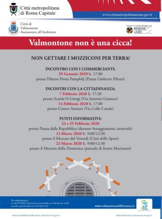 L' Amministrazione comunale della Città di Valmontone, mediante l' assessorato all' Ambiente, promuove la campagna di sensibilizzazione "Valmontone non è una cicca".
