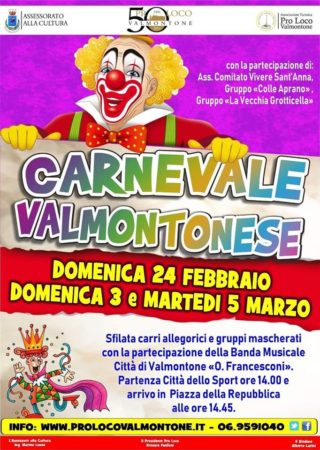 L'Assessorato alla Cultura e la Pro Loco di Valmontone organizzano e promuovono il Carnevale Valmontonese.