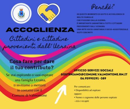 Nello spirito solidaristico che l’Italia sta avendo nei confronti dell’Ucraina, l’Amministrazione comunale invita i cittadini, le associazioni e gli enti religiosi a segnalare l’eventuale disponibilità all’accoglienza e all’ospitalità dei rifugiati.