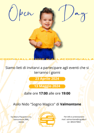 Si informano i cittadini di Valmontone che sono in agenda gli open day dell’asilo nidoSogno Magico“.