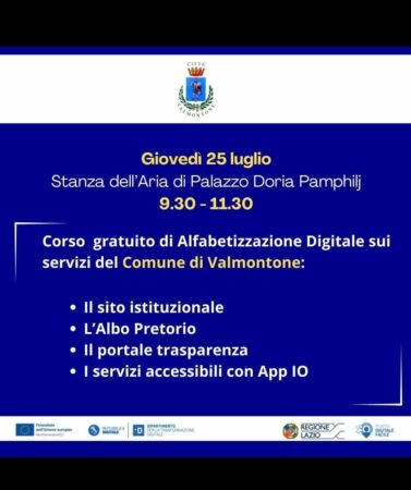 A Valmontone, presso la Stanza dell‘Aria di Palazzo Doria Pamphilj, è in agenda un corso gratuito di alfabetizzazione digitale.