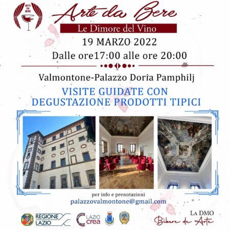 Dopo gli appuntamenti enogastronimici a Palestrina (Zi Rico) e Valmontone (Antica Cantina-Elle Et Lui), e quello culturale a Piglio (Marco Paoli - Casale Verde Luna), torna "Arte da Bere - Le Dimore del Vino" con un viaggio alla scoperta di Palazzo Doria Pamphilj di Valmontone.