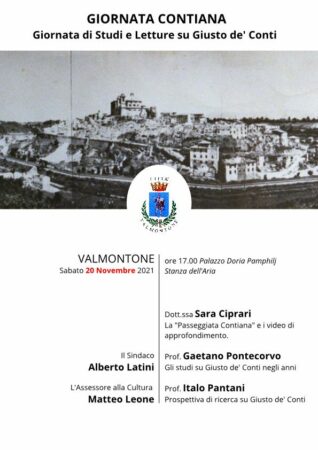 Sabato 20 novembre alle ore 17.00 presso la Stanza dell'Aria di Palazzo Doria Pamphilj a Valmontone si terrà un'importante conferenza dedicata a Giusto de' Conti. Consigliato prenotare il proprio posto scrivendo alla mail valmontone@bibliotecheprenestine.it o chiamando i numeri 339.87.49.241 e 0662...