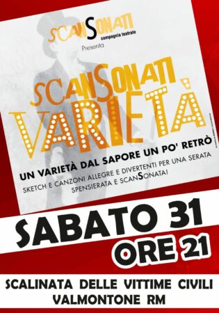 A Valmontone si saluta luglio 2021 con un evento della kermesse estiva "Estate a Teatro che oggi, alle ore 21, presso la Scalinata delle Vittime Civili, propone il varietà della compagnia Gli Scansonati.