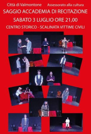 Alla Scalinata Vittime Civili, nel cuore del Centro Storico di Valmontone, saranno di scena gli allievi dell'accademia di recitazione "Compagnia Teatro Nuovo".