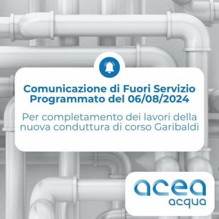Acea Ato2 comunica che, per consentire un intervento di manutenzione straordinaria finalizzato a migliorare l’efficienza del servizio e per completare un progetto infrastrutturale di grande importanza per la comunità, ovvero i lavori della nuova conduttura di corso Garibaldi, è necessario effettuare una sospensione del flusso idrico in alcune zone di Valmontone.