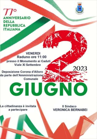In occasione del 77° Anniversario della Repubblica Italiana, la Città di Valmontone celebra l’importante ricorrenza storica.