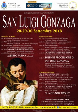 Iniziative culturali, la musica dei New Trolls, spettacolo, lo street food Festival e la tradizionale processione per le vie del centro storico cittadino. E’ quanto prevede il programma della Festa del patrono cittadino San Luigi Gonzaga, che si svolgerà dal 28 al 30 settembre.