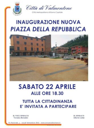 A Valmontone, sabato 22 aprile 2023, è in agenda, alle ore 18:30, l’inaugurazione della Nuova Piazza della Repubblica.