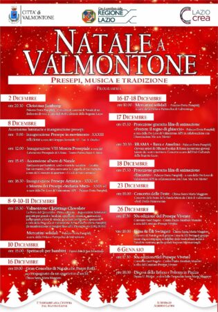 La programmazione della Città di Valmontone, per le Festività Natalizie 2022, inizia il 2 dicembre e termina il prossimo 6 gennaio.
