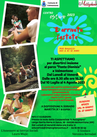 Sono aperte le iscrizioni a Centro estivo comunale, che si terrà al Parco Fonte Dionisia dal 10 luglio al 4 agosto 2023.