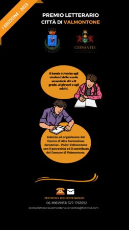 È prossima, nella nostra città, un’iniziativa culturale d'eccellenza: la I edizione del “Premio Letterario Città di Valmontone”.