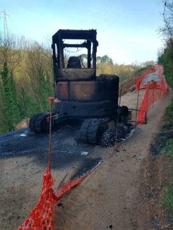 In via Colle Sant'Upica, ignoti hanno appiccato il fuoco ad uno scavatore ed al container che si trovano nel cantiere con cui l'Amministrazione comunale sta realizzando una delle opere più importanti della viabilità locale.