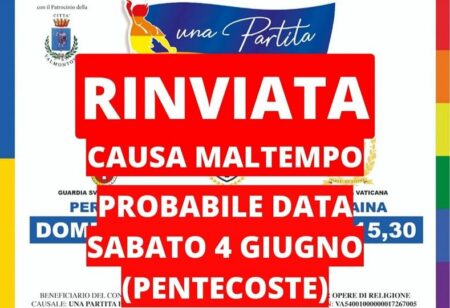 Rinviata, causa maltempo, la “Partita per la Pace” di domani 08 maggio 2022