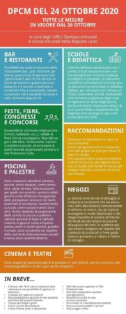 Una sintesi del DPCM che, il premier Giuseppe Conte, ha firmato il 24 ottobre 20200; in vigore dal 26 ottobre fino al 24 novembre 2020.