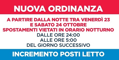 L’ordinanza entra in vigore venerdì 23 ottobre e avrà una validità di 30 giorni, per le scuole le disposizioni valgono da lunedì prossimo, 26 ottobre 2020.
