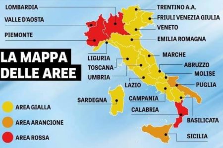 Zona ROSSA: misure adottate nelle regioni con uno scenario di massima gravità e con un livello di rischio alto. Sono le misure più restrittive.