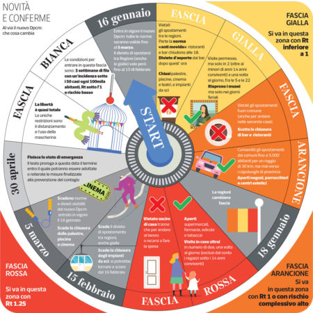 A partire dal 16 gennaio 2021 una nuova griglia di regole, in materia di Covid – 19, per contrastare e contenere l’emergenza epidemiologica.