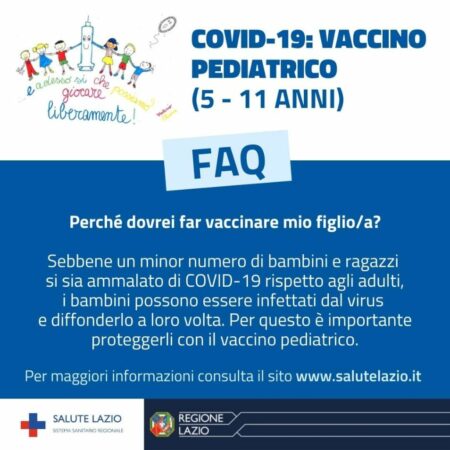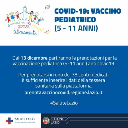 Dal 13 dicembre 2021 al via le prenotazioni del vaccino anti-Coronavirus per i bambini (età 5 – 11 anni).