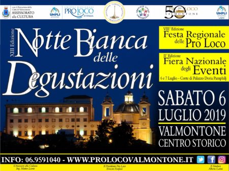 Sabato 6 Luglio torna a Valmontone la XIII Edizione de “La Notte Bianca delle Degustazioni”. Quest’anno in concomitanza, visti i festeggiamenti dei 50 anni della Pro Loco, si svolgerà anche l’VIII Edizione della “Festa Regionale delle Pro Loco del Lazio” e la II Edizione della “Fiera degli Eventi”.