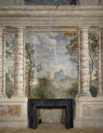 Proteo e le Naiadi sono dipinti sulla parete settentrionale. Nell’ultimo riquadro, tratto dalle Metamorfosi d...